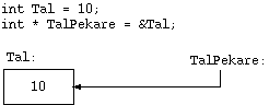 datatyp variabelnamn; datatyp * pekarnamn; pekarnamn = &variabelnamn; |